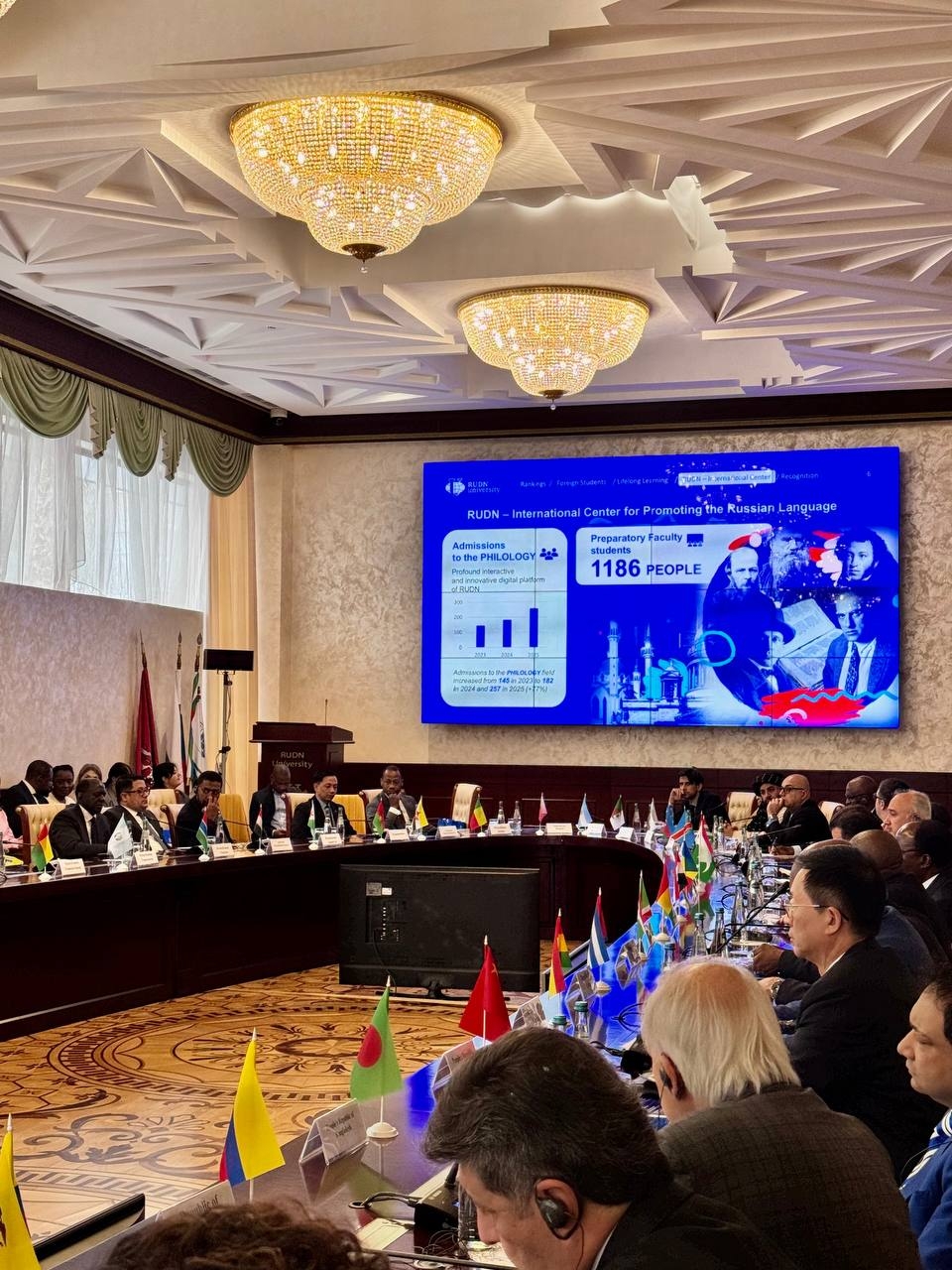 “Ofrecemos formación gratuita en idioma ruso a los empleados de las misiones diplomáticas de estados extranjeros ubicados en el territorio de la Federación de Rusia. Para los embajadores extraordinarios y plenipotenciarios, hemos desarrollado un programa individual”, declaró Oleg Yastrébov, rector de la RUDN.